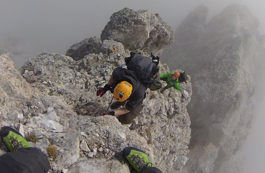 In de Brenta de Via delle Bocchette, een klassieker die niet mag ontbreken. De eerste hoek afgesneden en vervolgens het middelste deel van deze intens mooie route gelopen. Helaas de verkeerde afdaling genomen waardoor wat extra nachtelijk avontuur. De eerste overnachting midden in een via ferrata en tijdens de terugreis ongedoucht langs klimvrienden was misschien minder verstandig.
